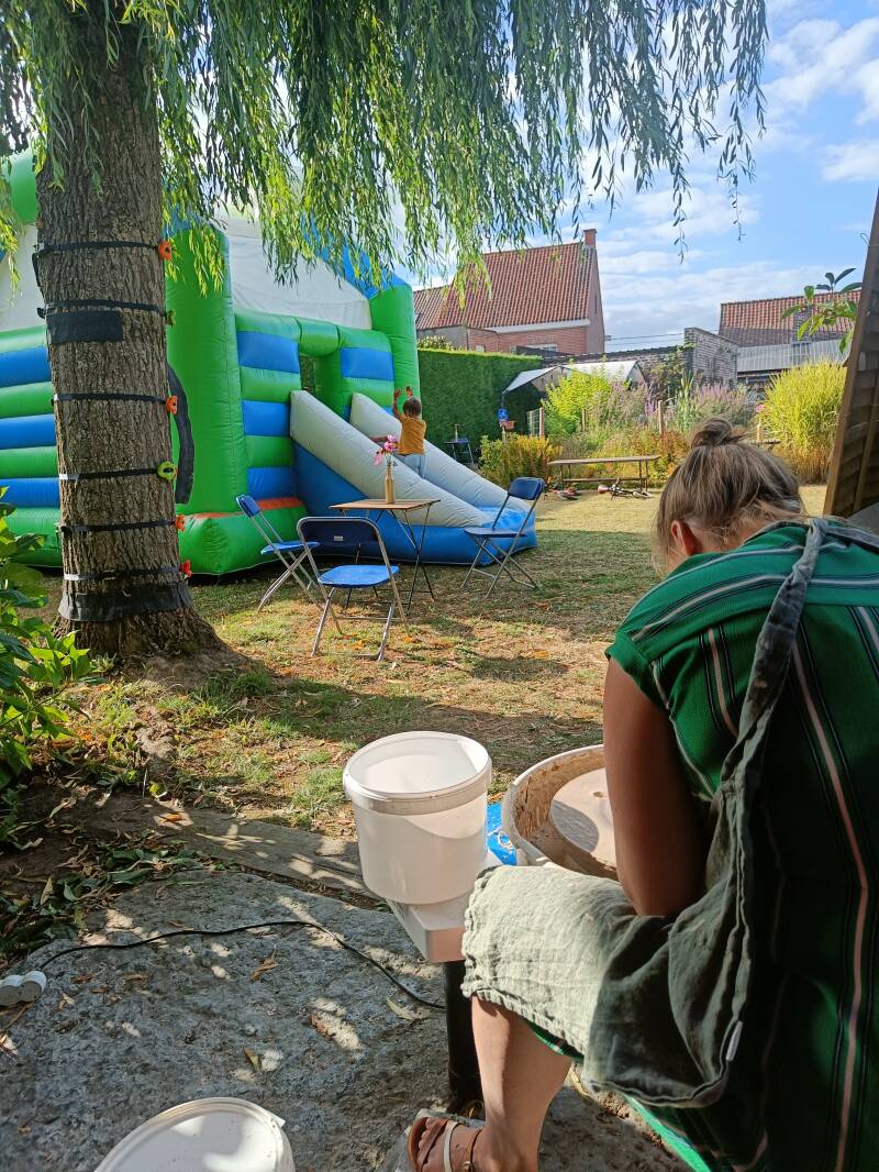 Door het uitvoeren van deze hobby's raakten vele kasten gevuld tot ze uiteindelijk uitpuilden van de klei en het papier. Vandaar dat in augustus 2022 de eerste pop-up werd gehouden om enkele werkjes te verkopen en mensen kennis te laten maken met het pas opgerichte 'Tussen Pot en Print'.