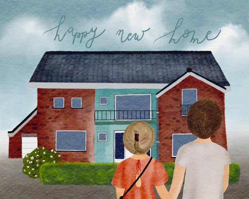 Een gepersonaliseerde tekening van een huis als cadeau/kaart/poster/ingekaderde afbeelding ... met of zonder tekst.